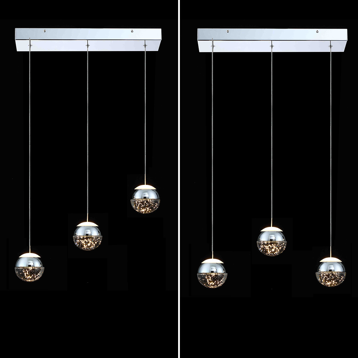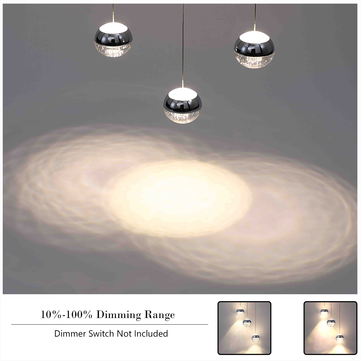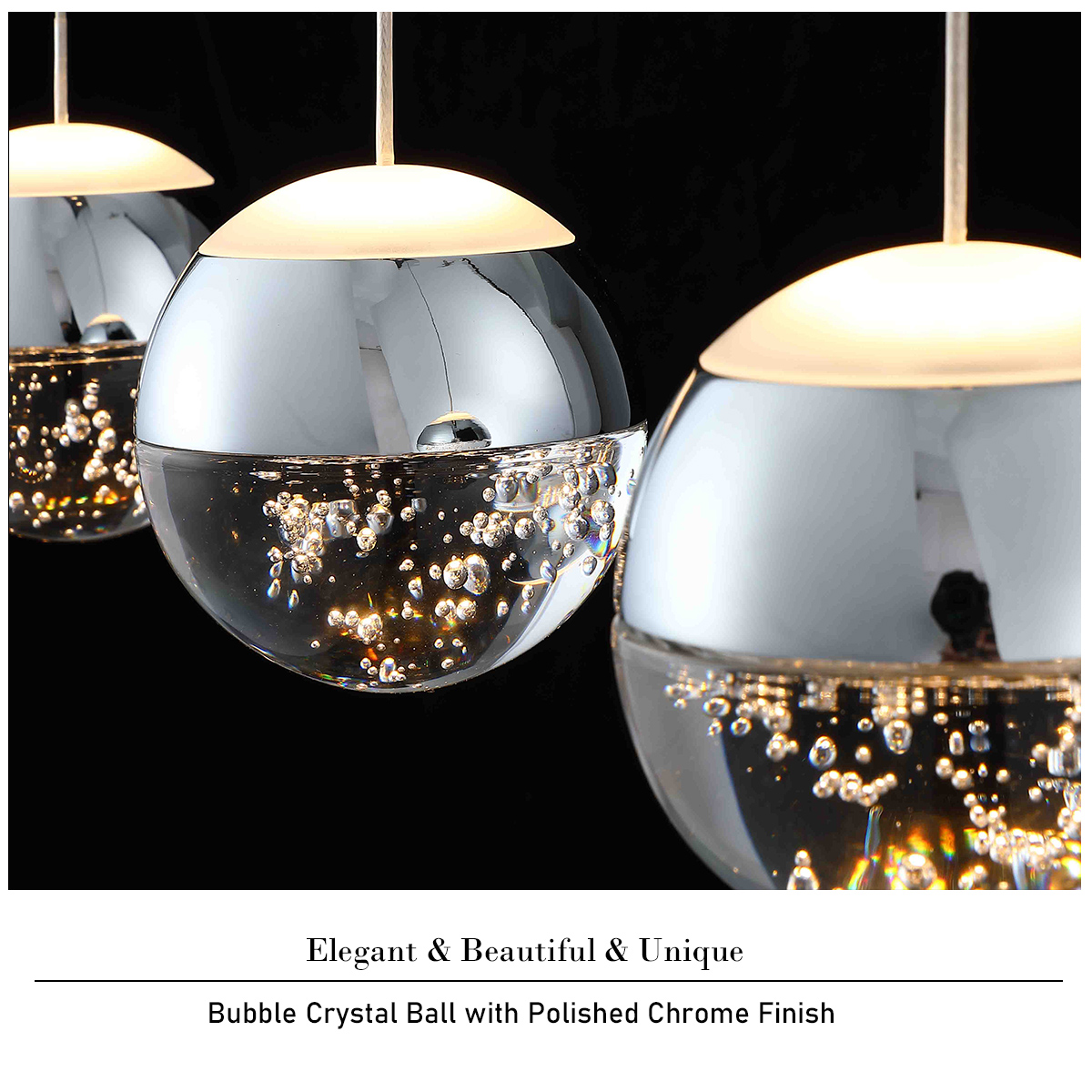 - 【MODERN DESIGN】 This pendant light has 3 premium bubble crystal ball, which is very pretty and modern. The light gets refracted beautifully by the bubbles giving it a unique appearance. The contemporary look makes it ideal for kitchen island, foyer, hallway, dining room, living room or entryway. Please note that the crystal ball is small and it's more of ambient light or mood lighting than a whole room light.
