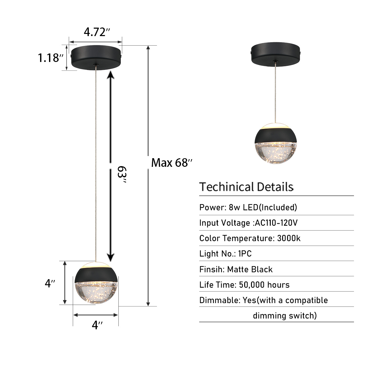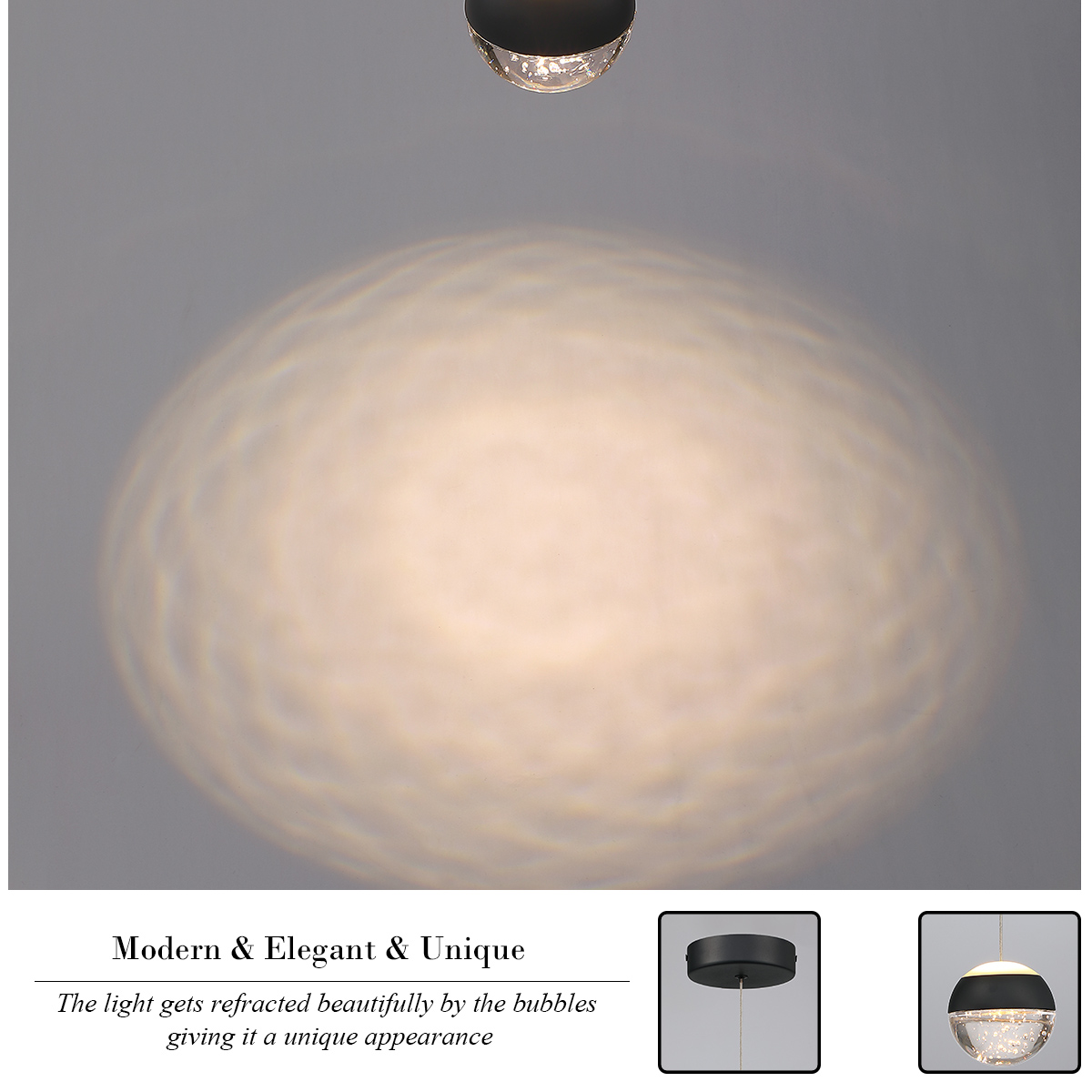 - Attractive and Versatile: When the light is on, this globe crystal pendant light looks really nice and creates nice reflection through the bubbles inside of it, perfect for decoration in kitchen island, above the sink or bar counter, bathroom and bedroom bedside. Please note that it's an accent light, not designed to light up a room.