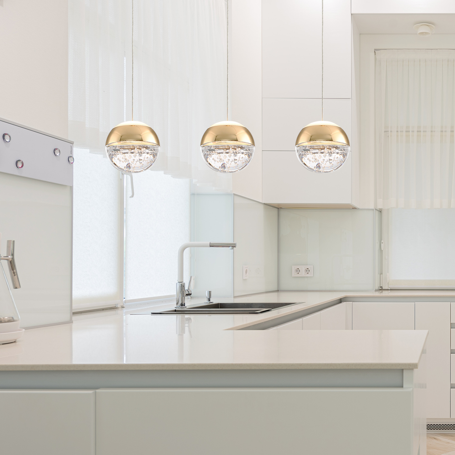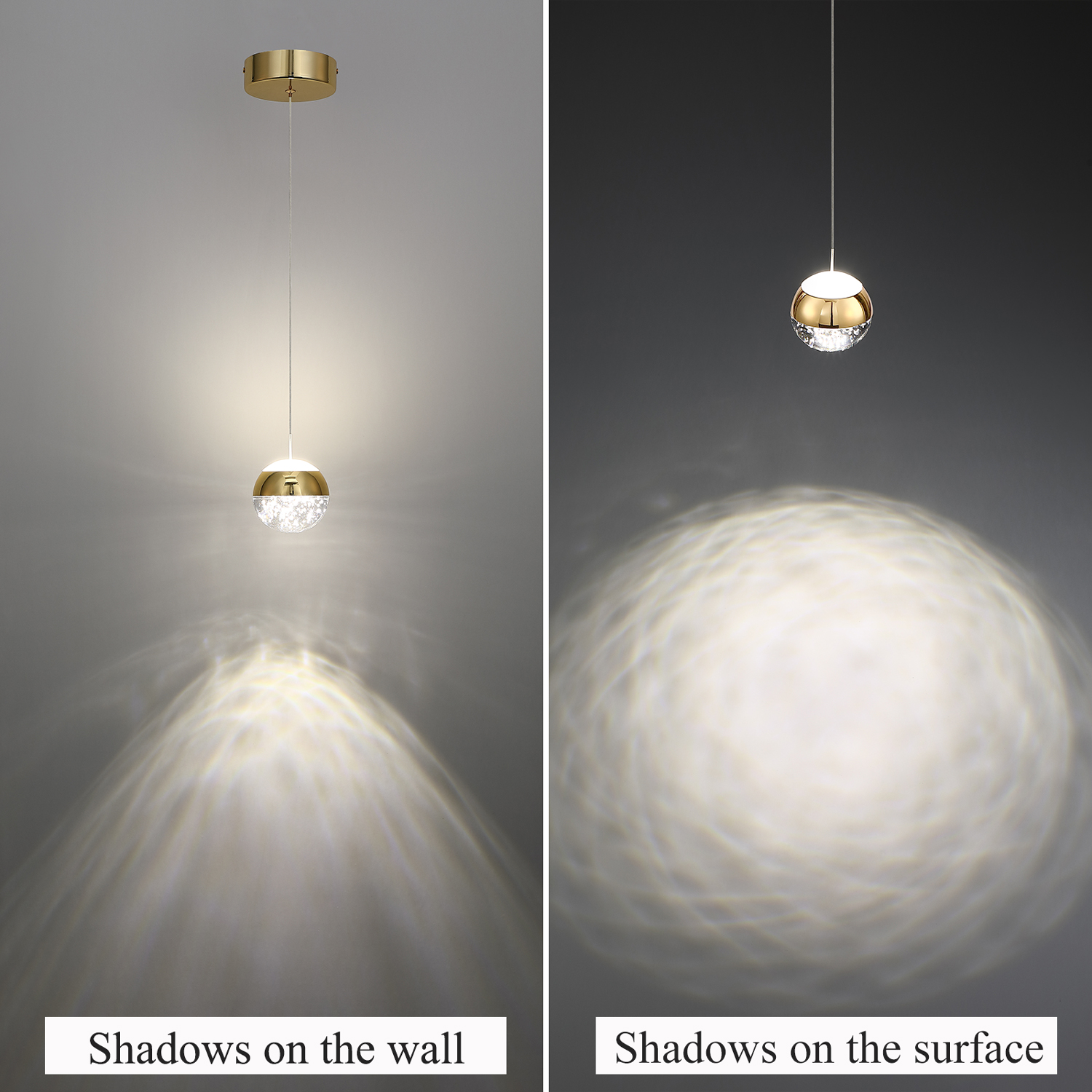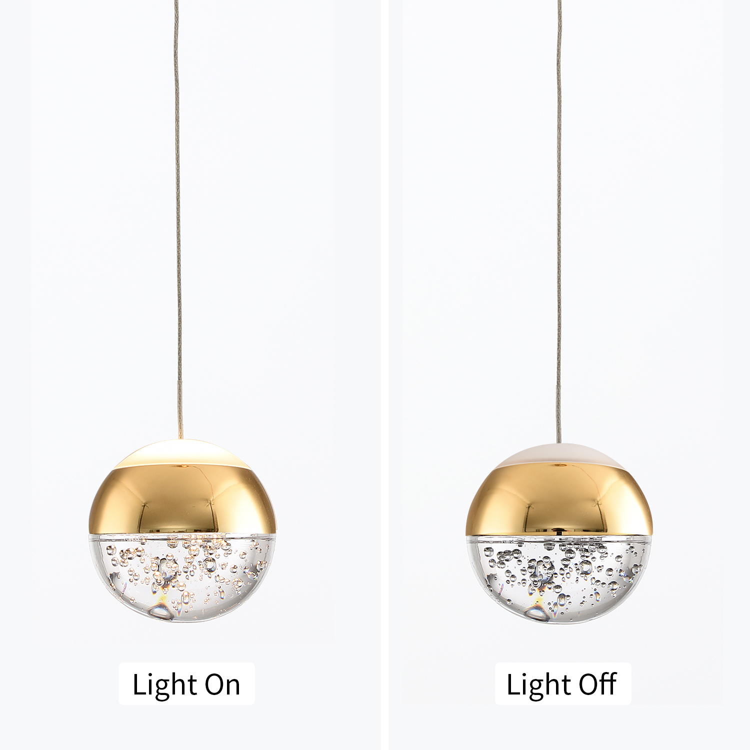 - ✔Attractive and Versatile: When the light is on, this modern crystal pendant light looks really nice and creates nice reflection through the bubbles inside of it, perfect for decoration in kitchen island, above the sink or bar counter, bathroom and bedroom bedside. Please note that it's an accent light, not designed to light up a room.
