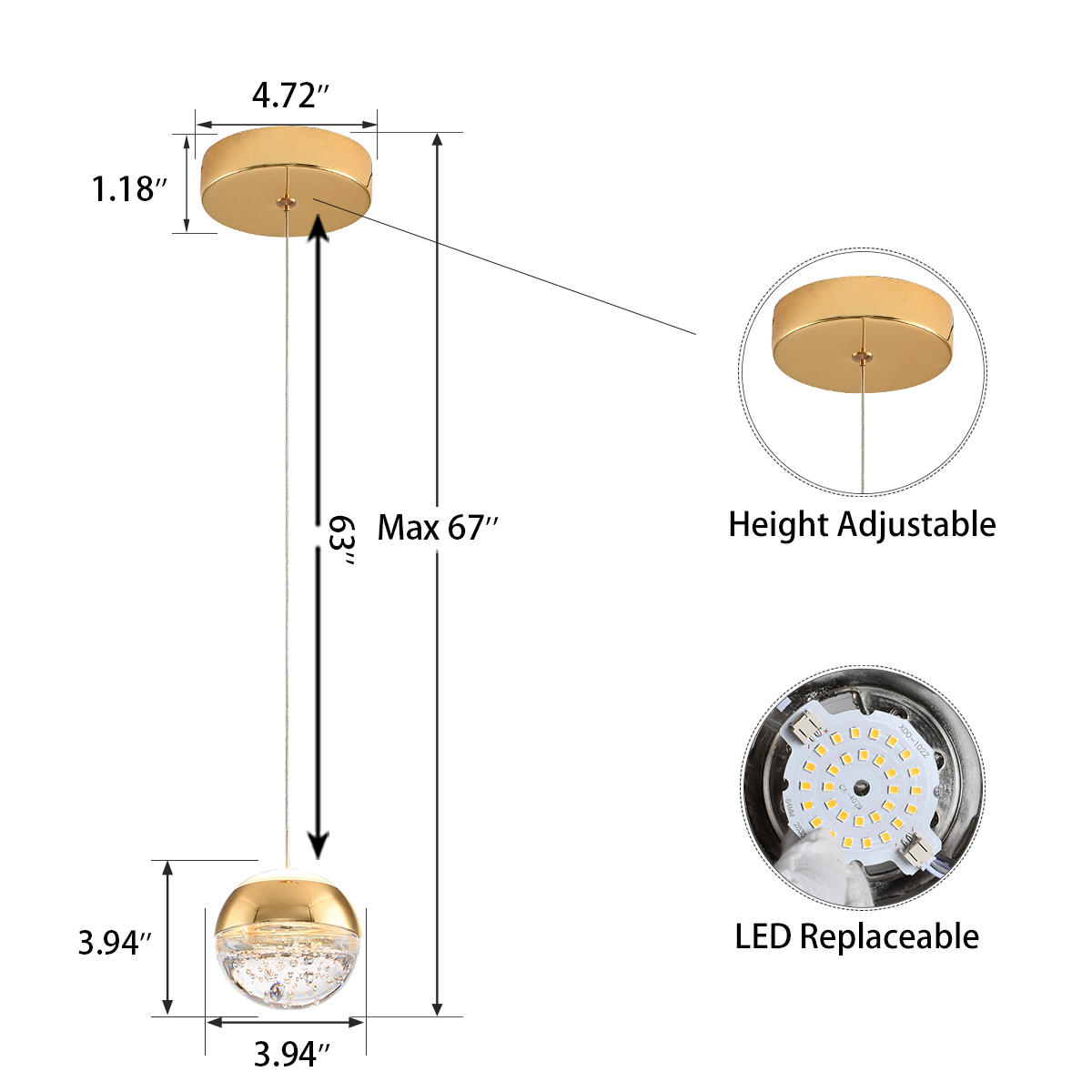 - ✔Beautiful and Modern: This globe crystal pendant light in polished gold finish has an elegant, modern design that looks great in any room. Please note that the size of this mini pendant light is tiny.