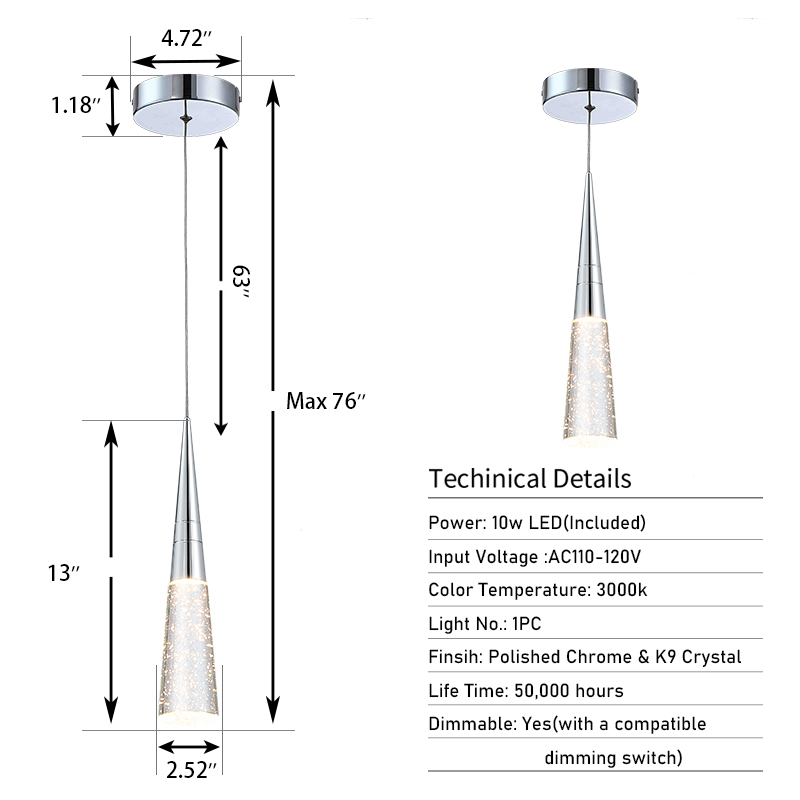 - 【Easy To Install】 Installation of this silver pendant light is easy if you have some handy work experience, 3 years warranty.