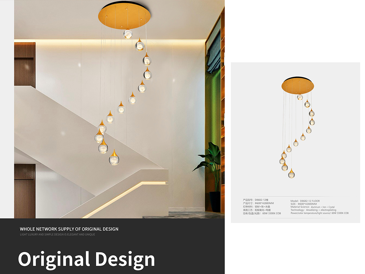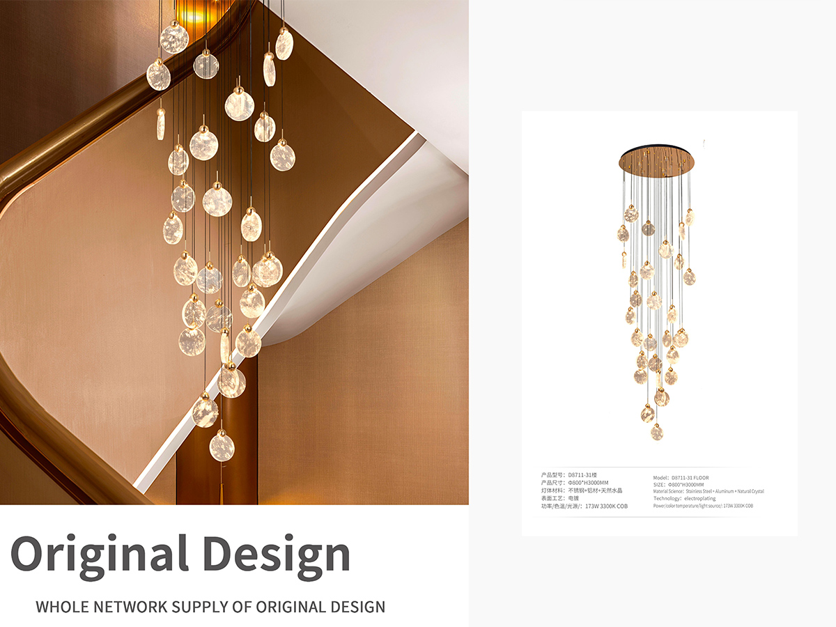 Customized designs are available for all kinds of staircase, hotel hallway, foyer, living room, entry way, etc. Please contact us at support@joollysun.com if you need.
