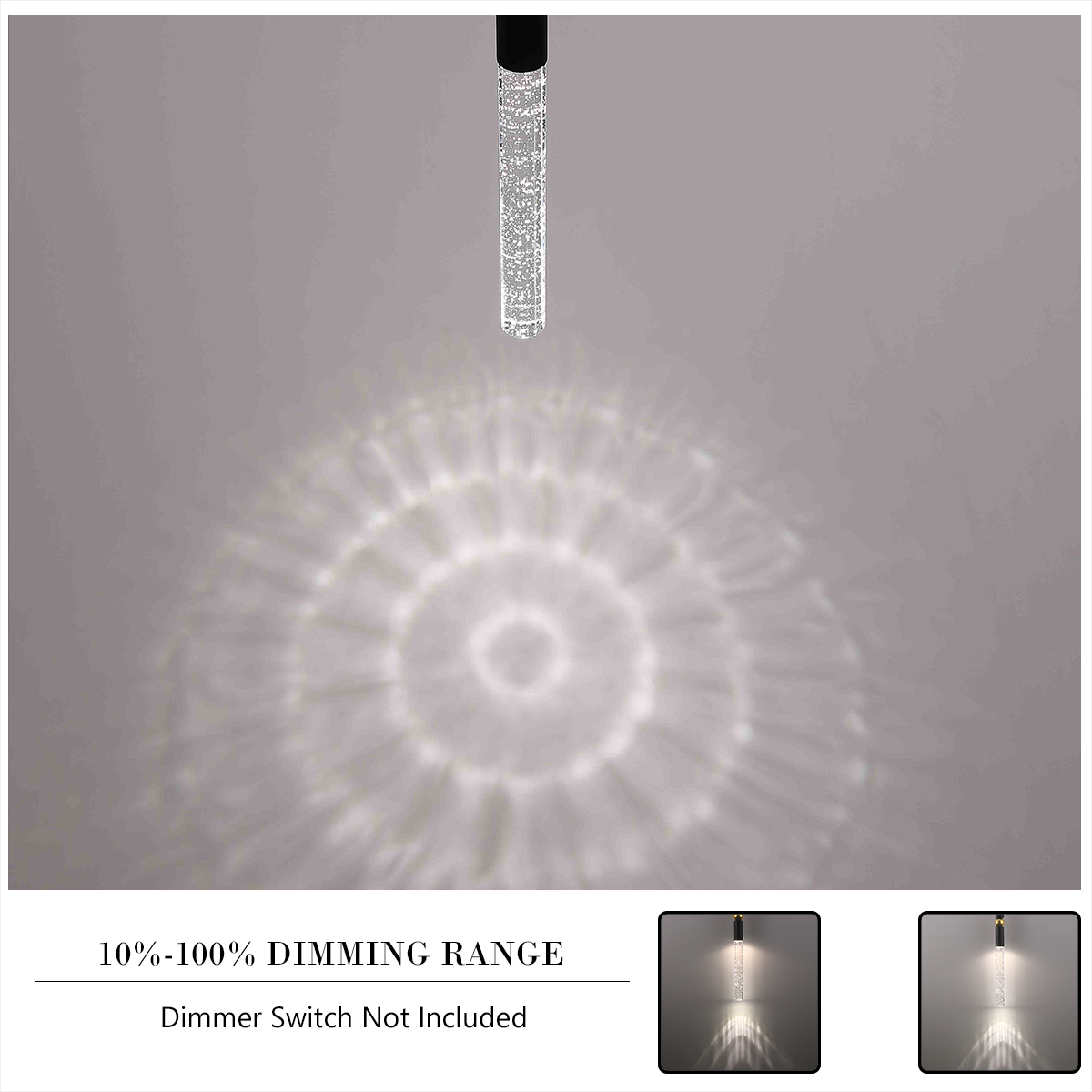 - 【MODERN DESIGN】 This modern pendant light has a premium bubble crystal cylinder with black and gold finish which is very pretty and modern. The light gets refracted beautifully by the bubbles giving it a unique appearance. The contemporary look makes it ideal for kitchen, over island, above the sink or bar counter, bedroom bedside and bathroom. Please note that it's more for ambient/mood lighting than to provide light to a room.