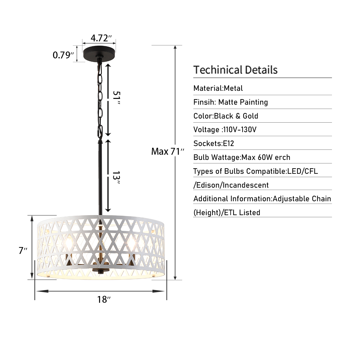 - OPEN DESIGN: This drum chandelier features a unique white metal shade and black arms, beautiful but simple. Without light diffuser on the bottom, it's easy to clean and change bulbs. This hanging lamp will beautifully illuminate your home, suiting multiple decors like mid-century modern & farmhouse.